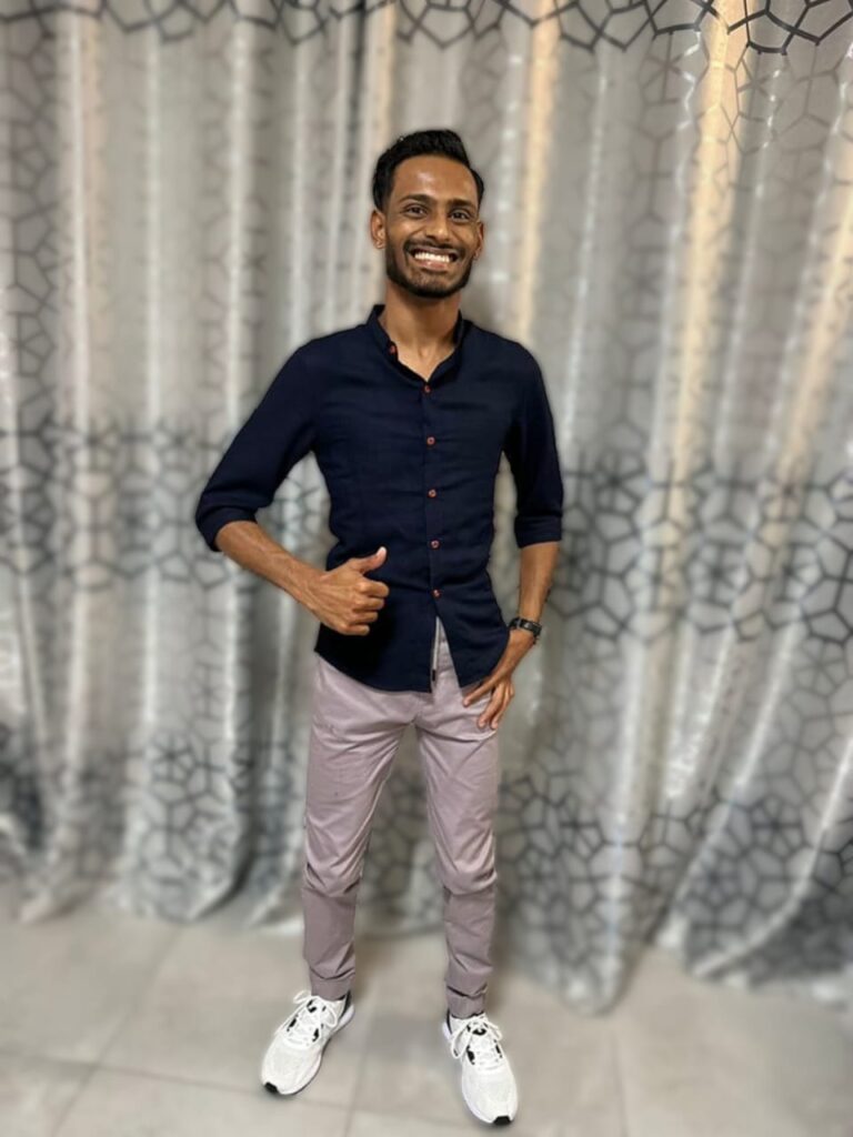 I am Vibhesh Santoo, 27 years old and residing at La Marie, Vacoas. I have cerebral palsy; that is, I have a minor physical disability since birth. It means I have a little difficulty walking and some slight spasticity in my hands. It doesn’t cause me any pain and doesn’t affect my daily life.
